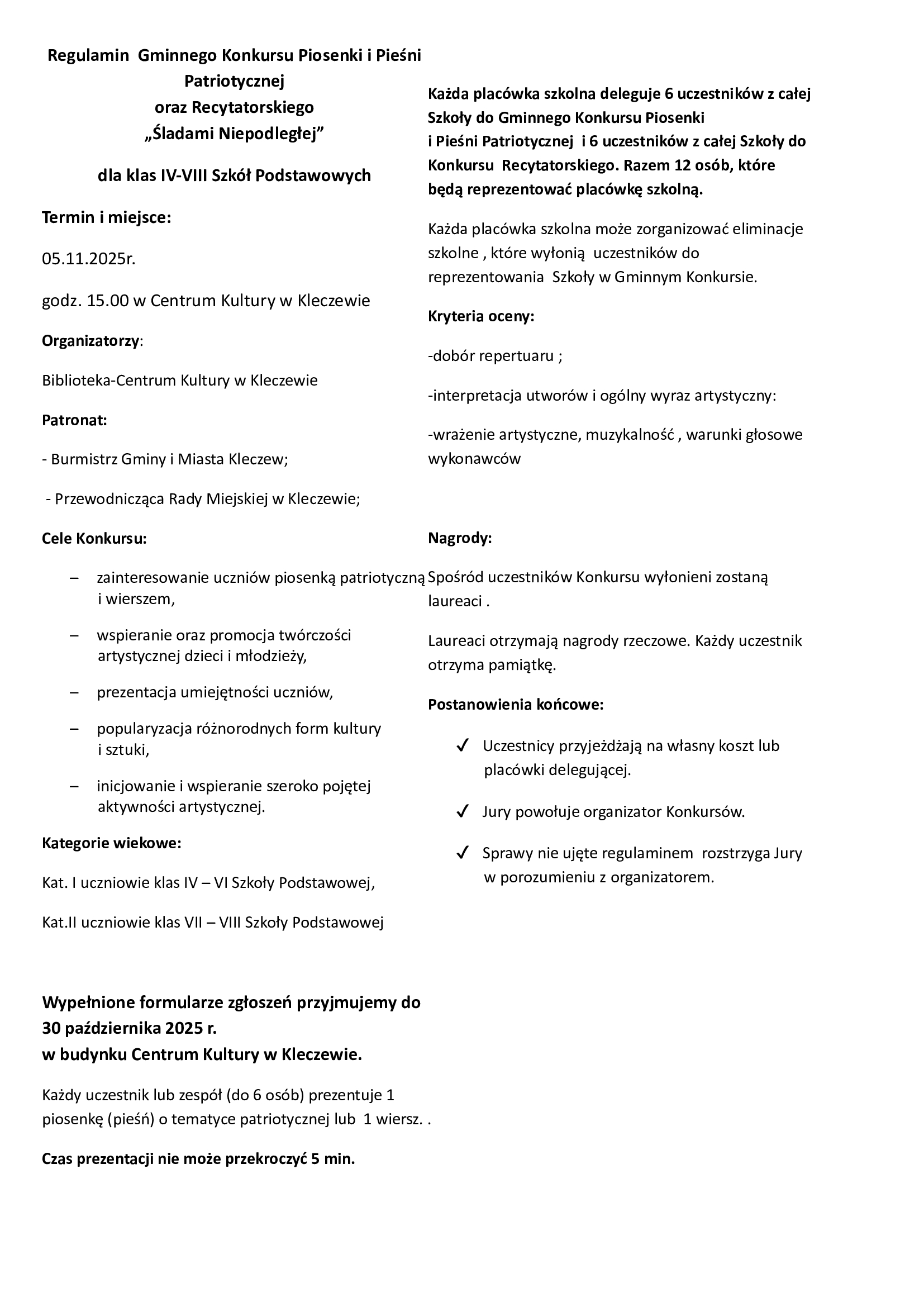 Konkursy odbędą się 5 listopada 2025 r. (godz. 15.00) w Centrum Kultury w Kleczewie